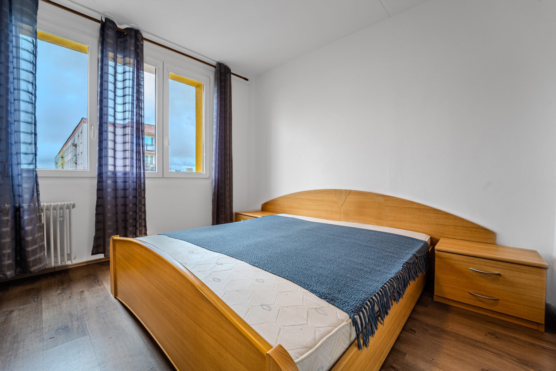 Ložnice je vybavena šatní skříni a dvojlůžkem s nočními stolky.