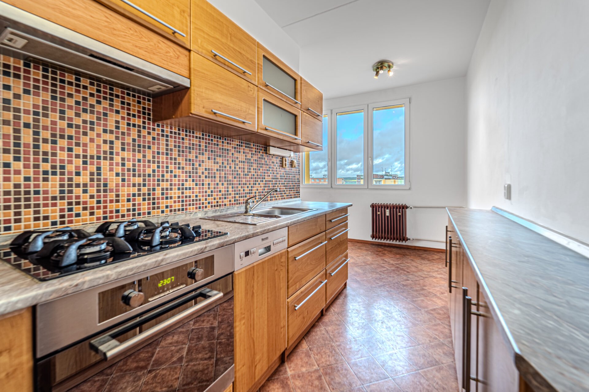 V sedmém patře na vás čeká útulný byt s dvěma samostatnými pokoji a prostornou kuchyní.