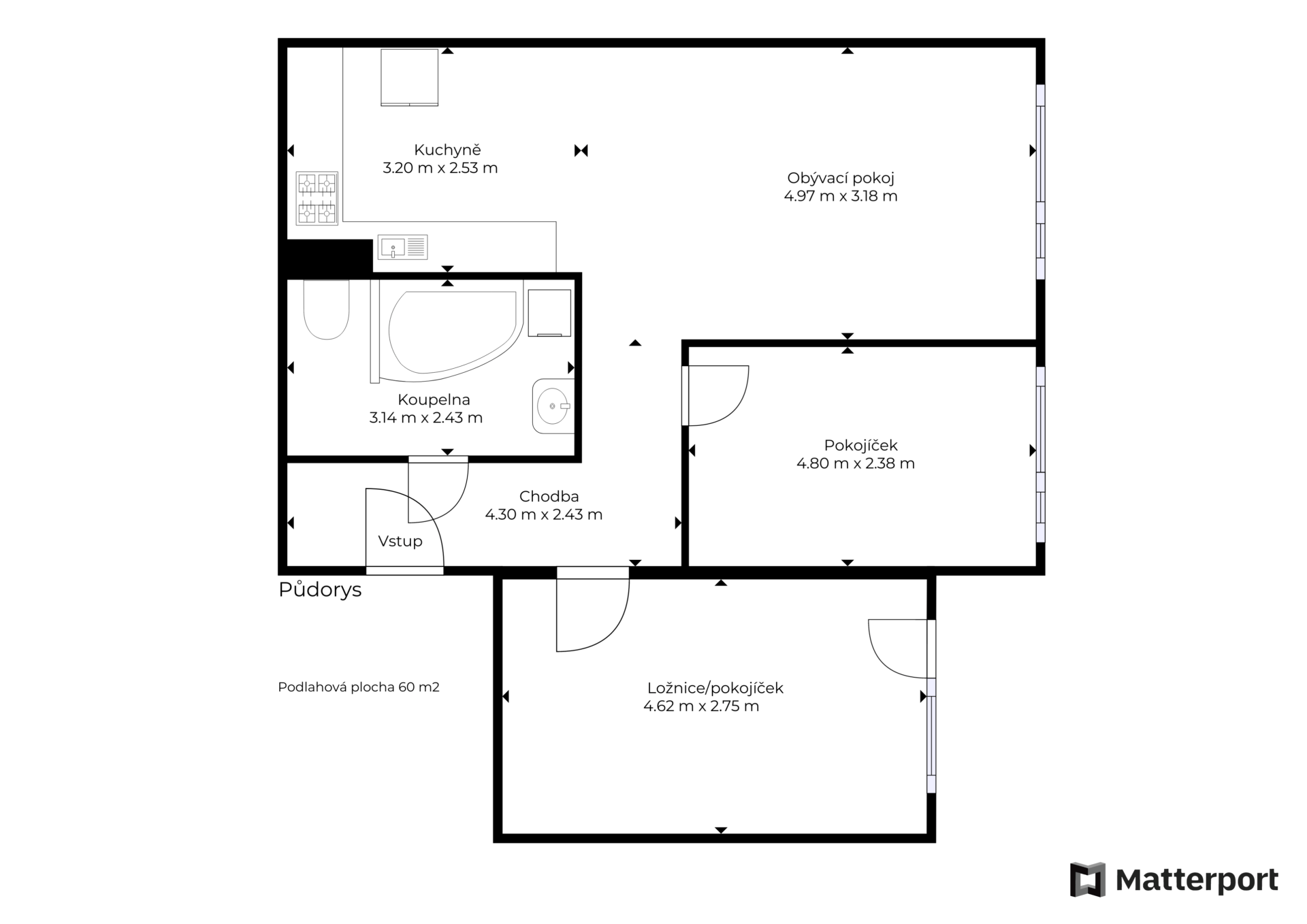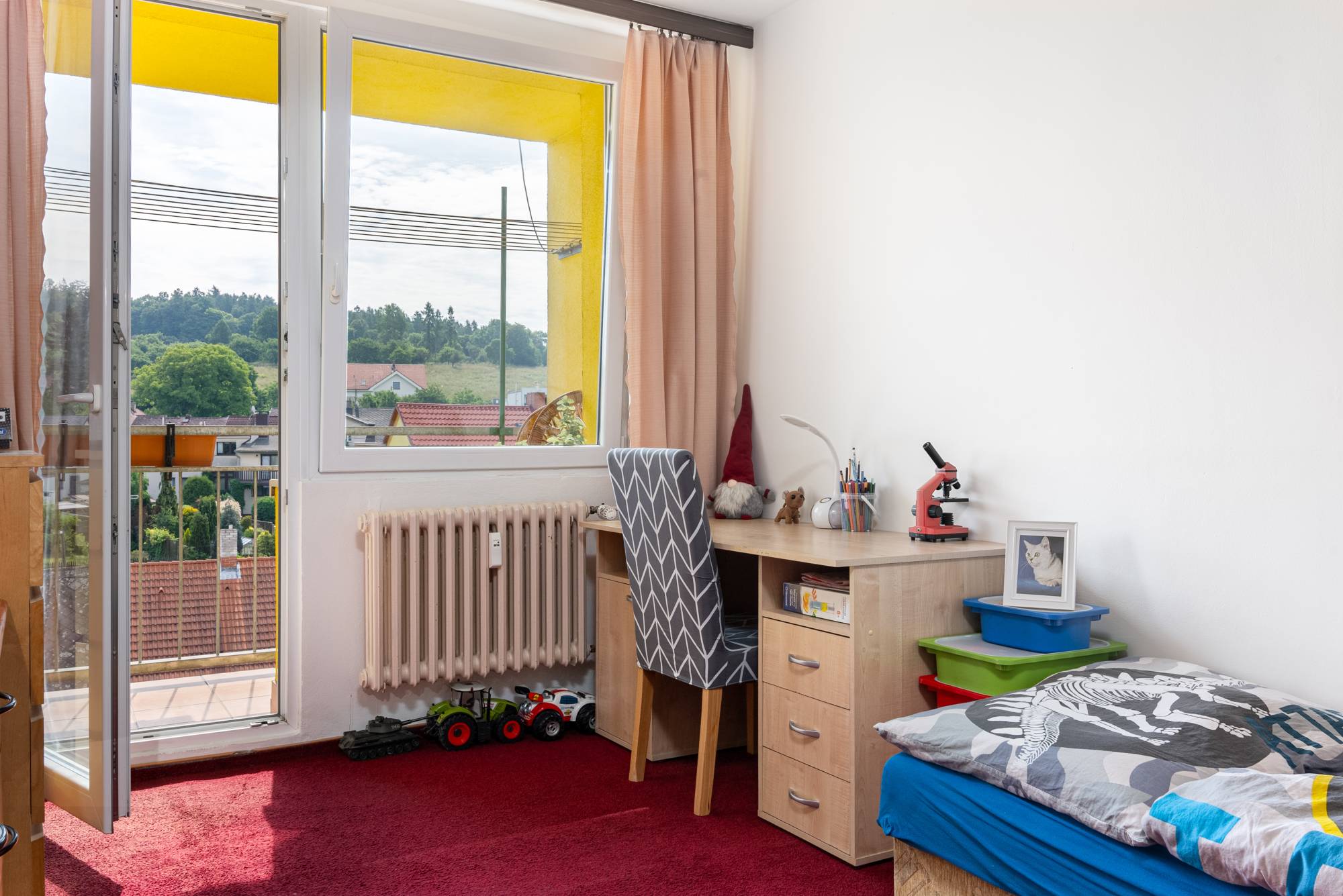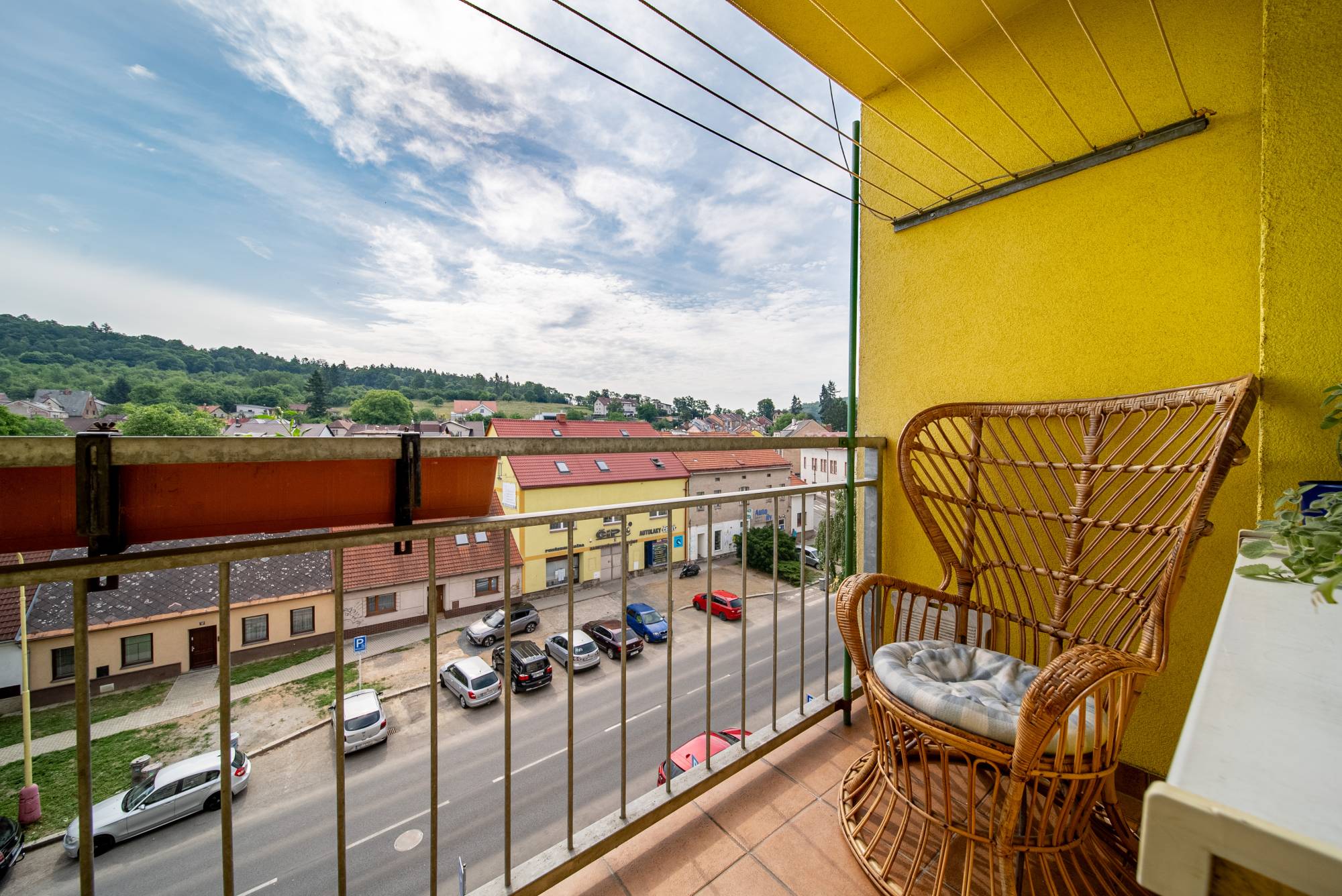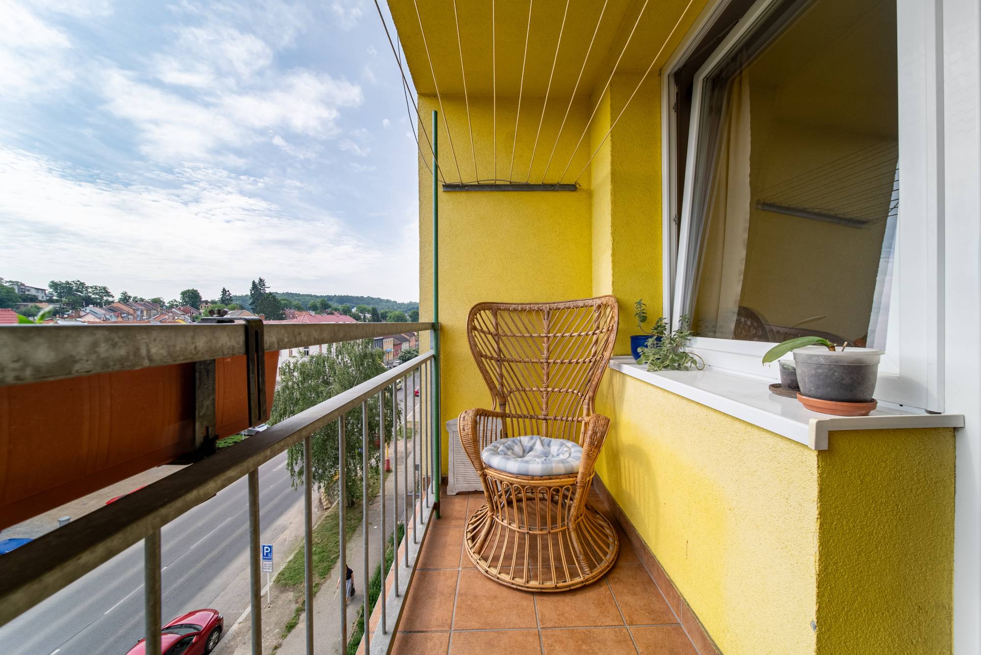 Byt má balkon a náleží k němu také sklepní kóje. Půdorys bytu naleznete ve fotogalerii.
