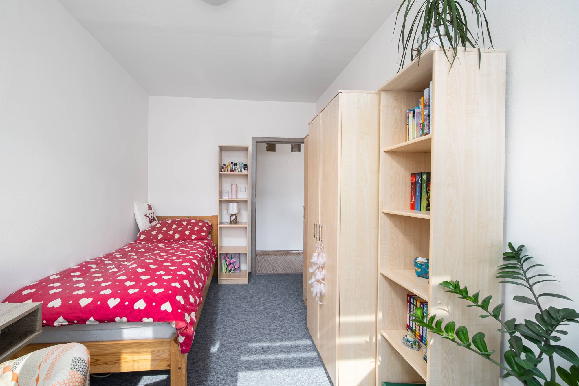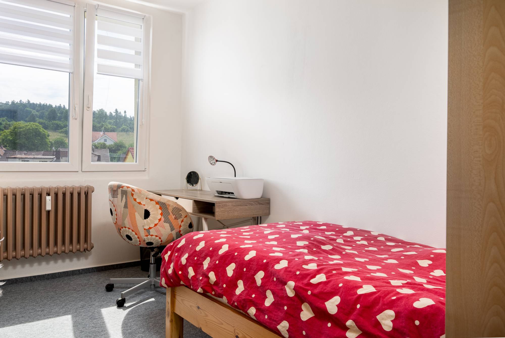 V pěší vzdálenosti od bytu naleznete vše, co byste mohli potřebovat pro spokojený život. Historické centrum, úřady, školky i školy. Zastávka autobusu je přímo pod domem. Doslova pár kroků máte krásný, nedávno revitalizovaný park a herní a sportovní zahradu s prolézačkami pro děti. (Klidová zóna Ryneček)