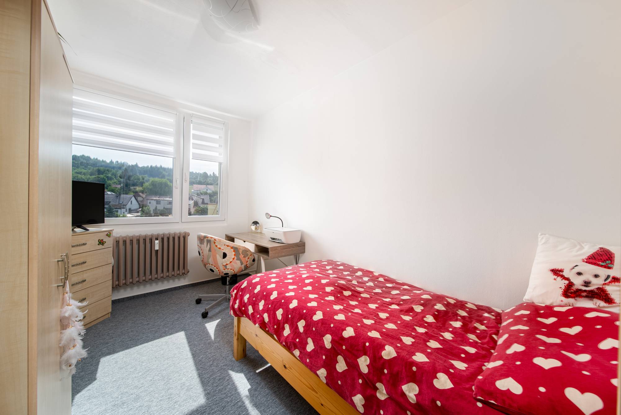 Byt se nachází v dobře udržovaném panelovém domě, který byl zateplen a má vyměněná plastová okna.