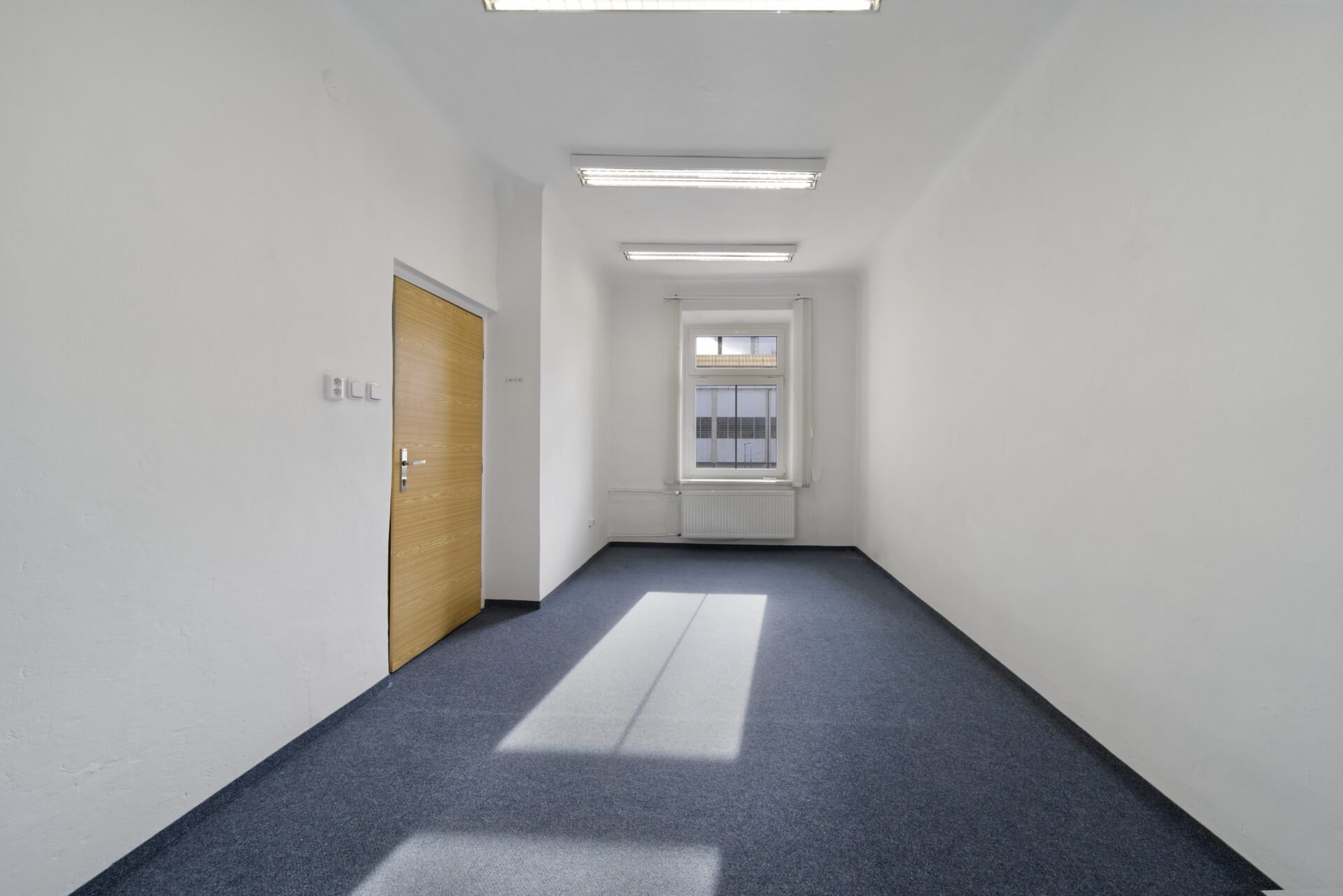 Z hlavní chodby je vstup do další kanceláře o velikosti 15,14 m2 a druhou toaletu.