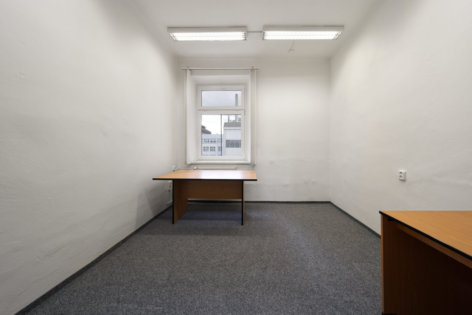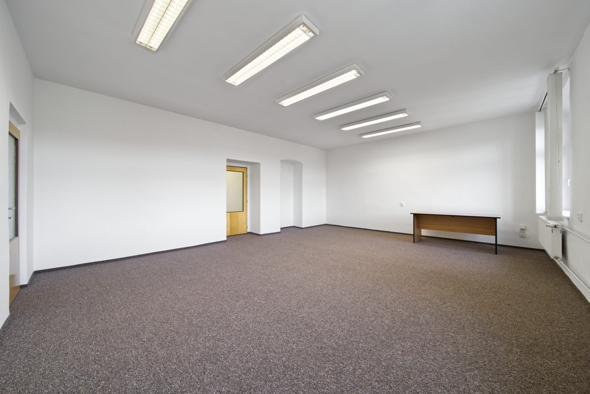 Místnosti jsou vybaveny zátěžovým kobercem a vertikálními žaluziemi na oknech.