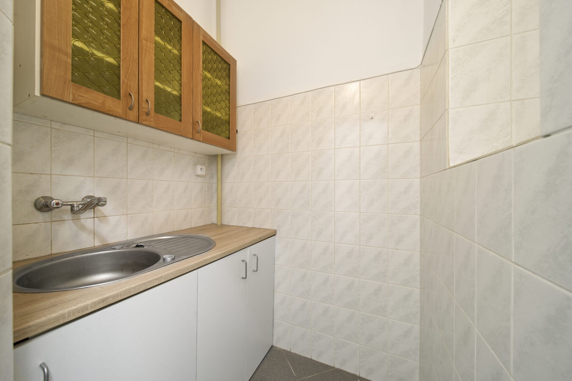 Součástí je menší kuchyňka, úklidová místnost a toaleta.