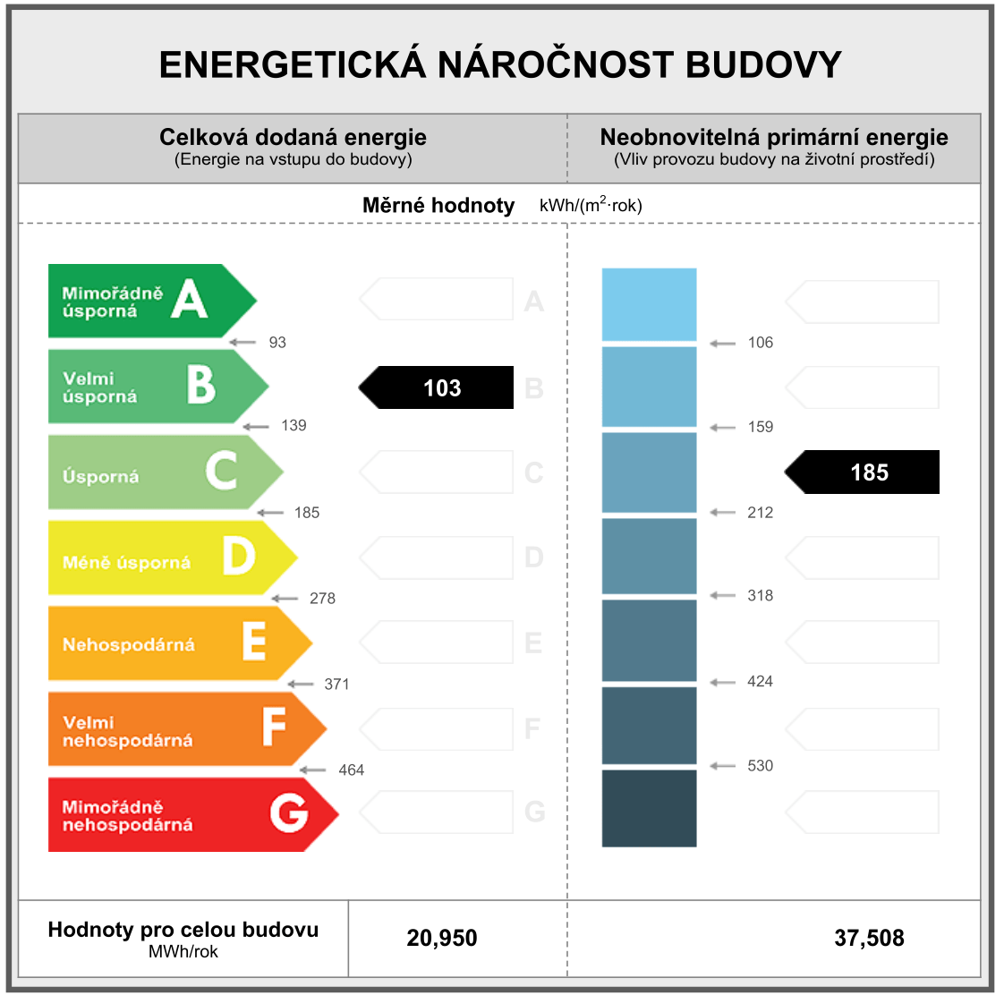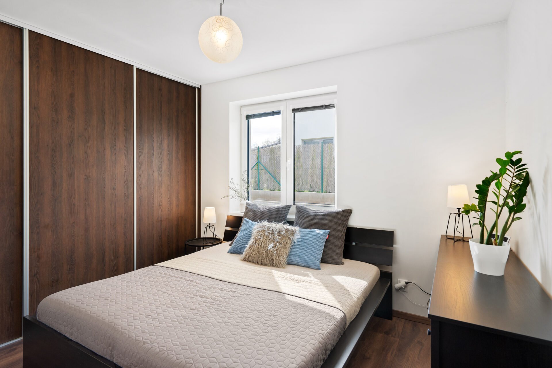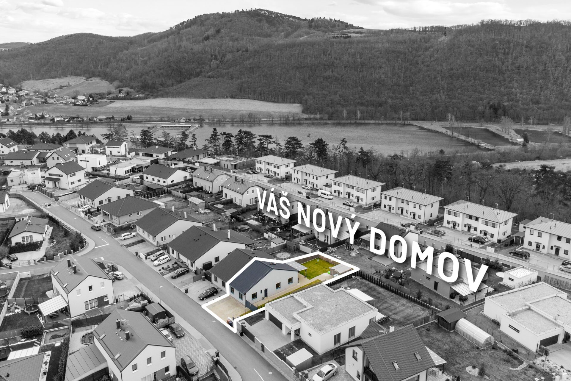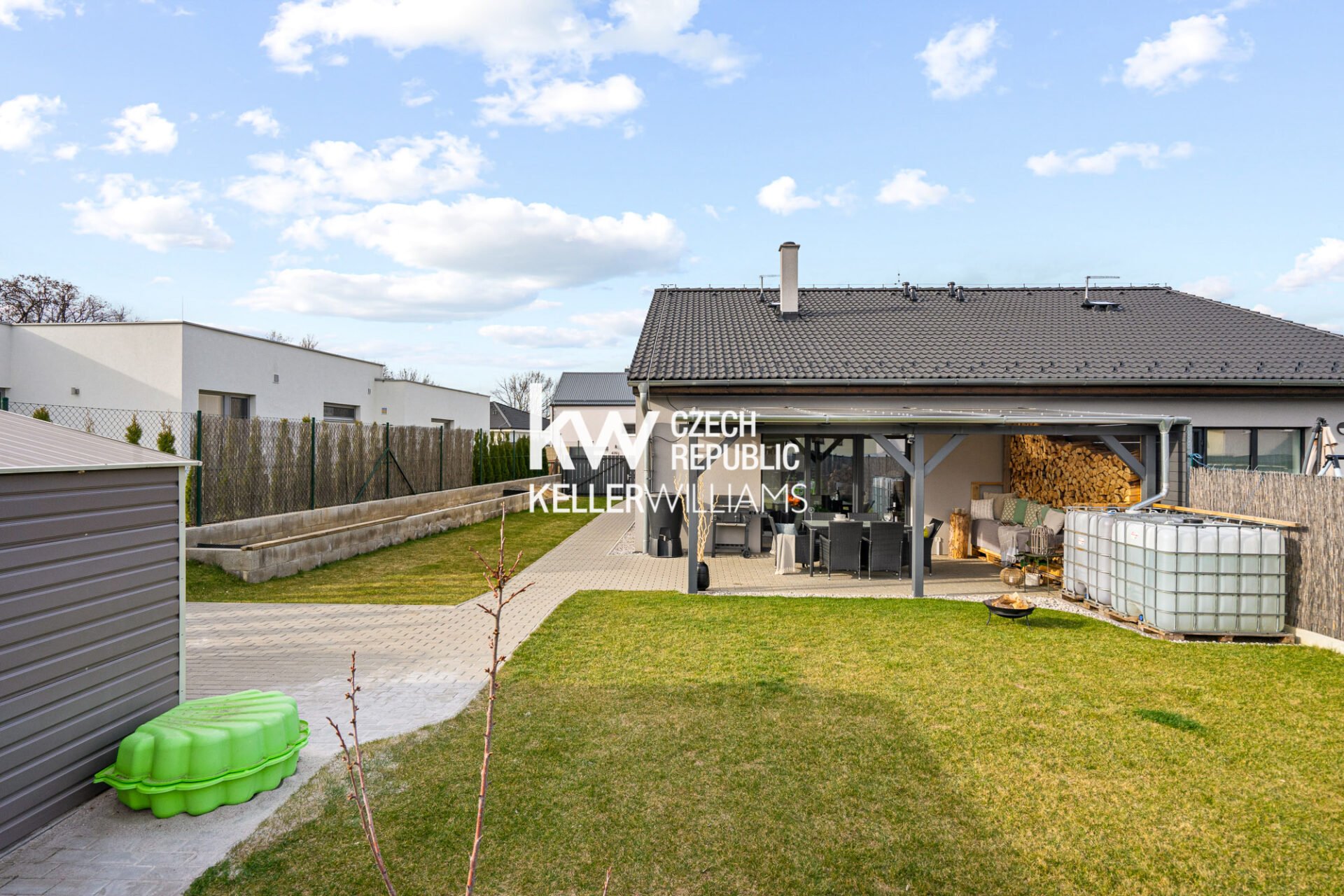 Světlý obývací pokoj s moderní kuchyní jsou orientovány na jih, ložnice na západ a zbývající dva pokoje na sever. Z obývacího pokoje vstoupíte na terasu s pergolou, která má 21 m². V domě se nachází také dvě sociální zázemí (koupelna s wc, vanou a umyvadlem a v druhém se nachází samostatné wc s umyvadlem) a technická místnost.