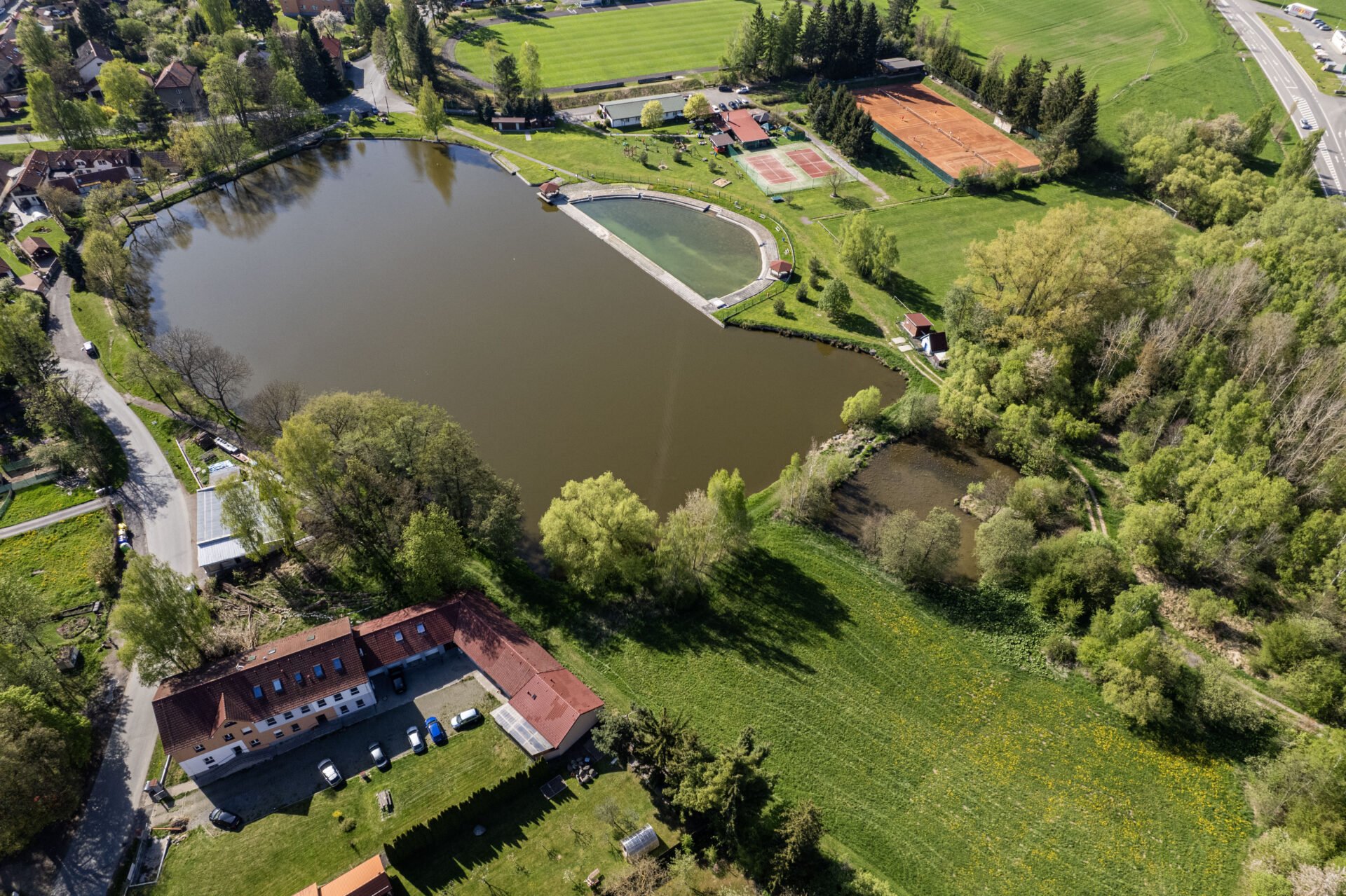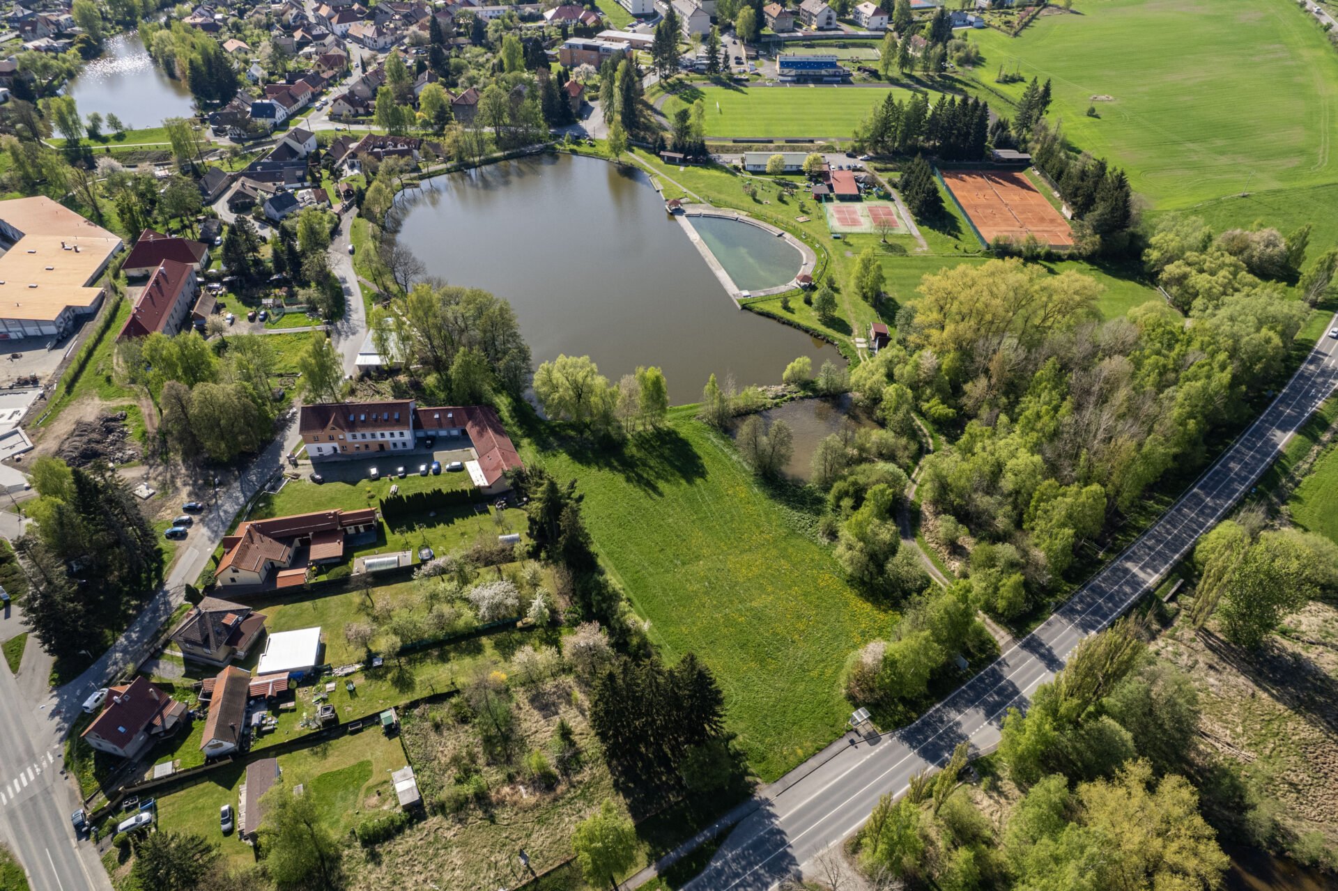 Pro ty, kdo milují přírodní vodu – jen pár kroků od vašeho budoucího domova se nachází sportovně-rekreační areál s koupalištěm. Stačí se projít po hrázi a v horkých letních dnech si můžete dopřát osvěžení